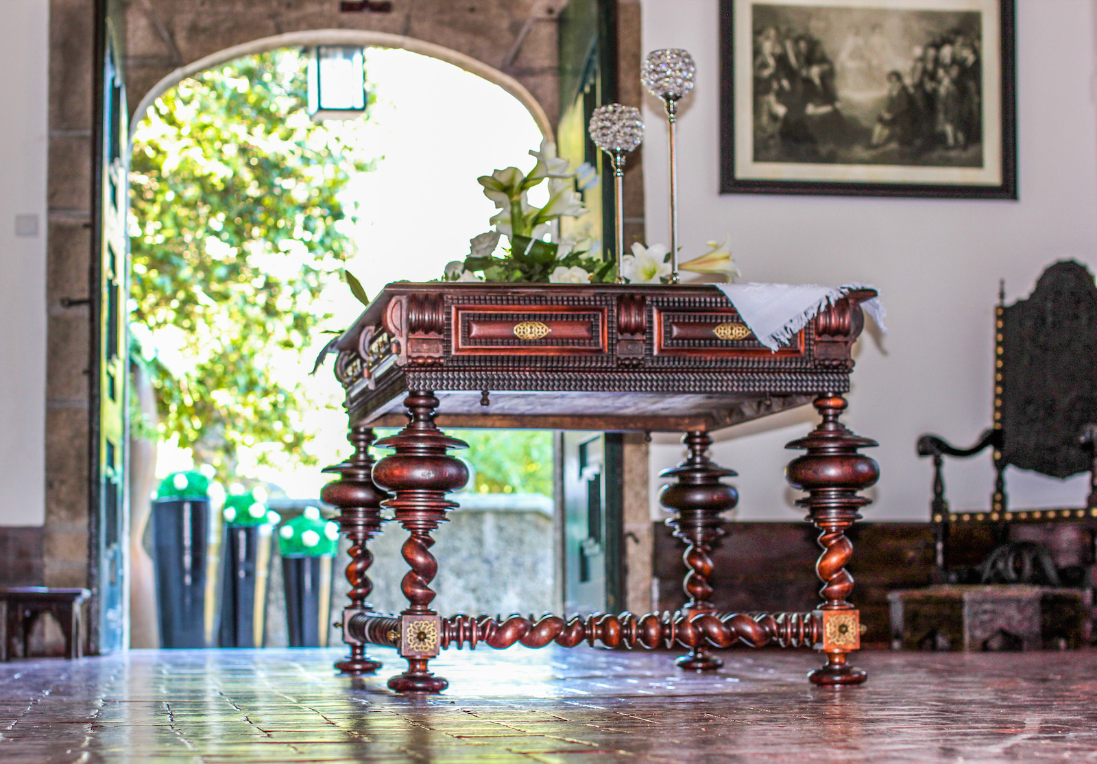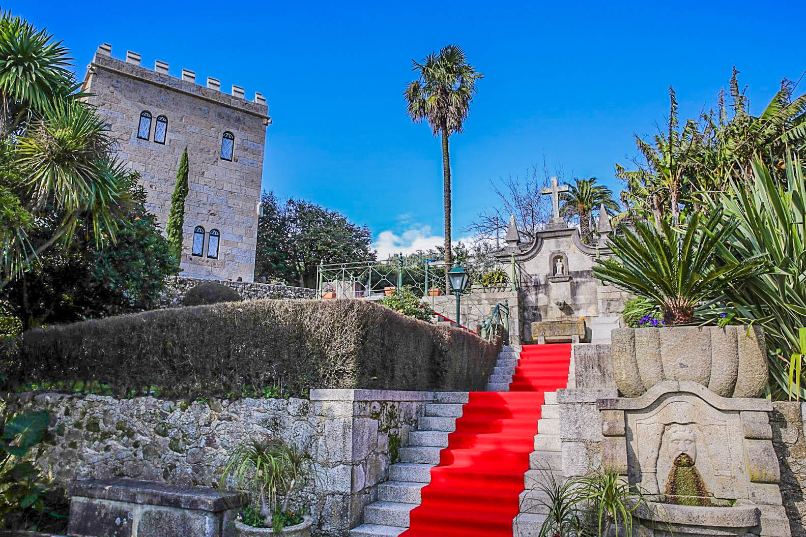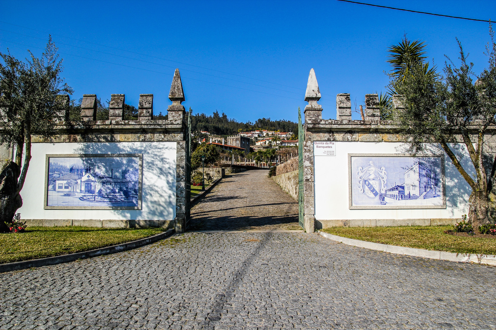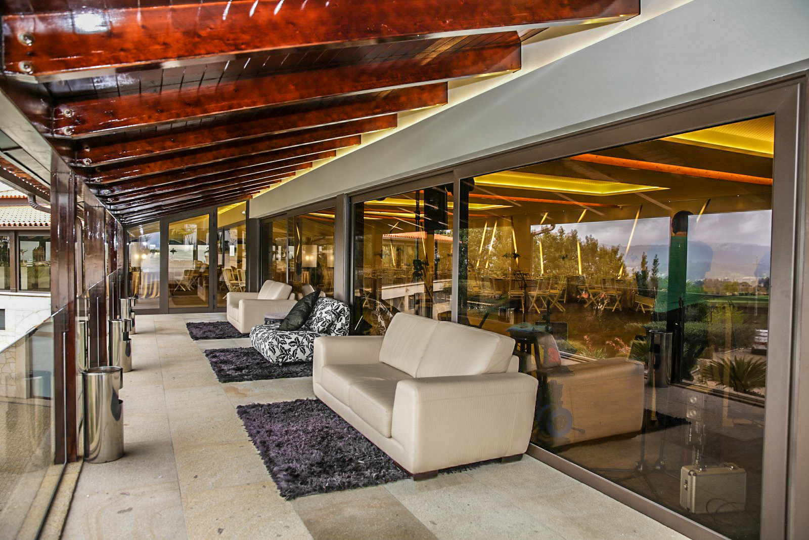 Pátio, acesso ao salão e acesso parque de estacionamento.
